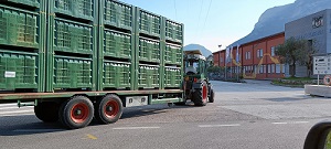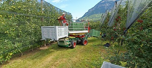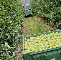 Wanneer de kar vol is, wordt deze gelijk naar het grote koelcomplex gebracht, dat samen van het handelshuis en de telers is. De appels worden geplukt en direct naar het koelhuis gebracht, zonder tussenstop op een erf. Dit werkt heel anders als in Nederland waar de meeste telers met pluktreinen en aparte hoogwerkers werken.