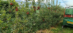 Het bedrijf teelt op ongeveer 5 à 6 hectare zeven verschillende rassen appels. De teler heeft wel zijn hoofdsoorten, waarvan hij wat meer hectares heeft. Dit zijn Gala, Golden Delicious, Red Delicious en Crimson Snow. Daarnaast heeft hij ook nog twee kleinere percelen met Giga en Fuji. Dit zijn behoorlijk wat rassen voor zo’n klein areaal.