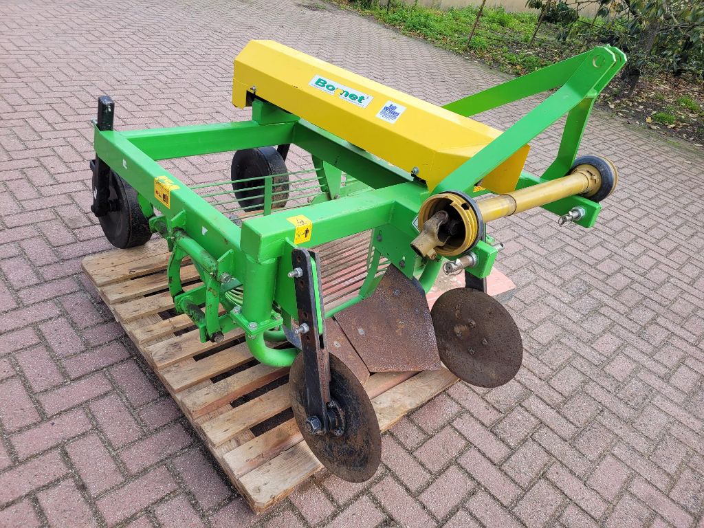 De machine wordt aanbevolen op kleine plantages op lichte gronden, middelgrote compacte gronden zonder stenen en plantenresten. Eenvoudige constructie, eenvoudig onderhoud en service zijn de belangrijke voordelen van deze machine. Twee schijfkouters snijden de planten af, dubbele schaar zaagt de nok in het onderste deel door en draagt ??deze horizontaal naar de trilzeef. Twee in tegengestelde richting bewegende zeefmachines verwijderen de grond.