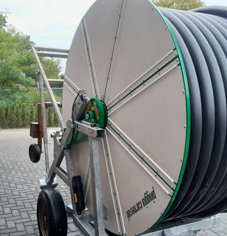 ***Te Koop**** Compacte Beregeningshaspel* Bauer Rainstar T32* nieuwstaat* slanglengte 220 meter* slangdikte 85mm* ecostar 4000S beregeningscomputer* komet twin 101 sproeikanon* handbediende trommel en steunpoten* compleet met 8 meter ...