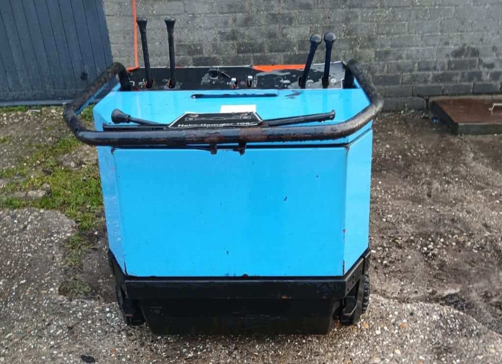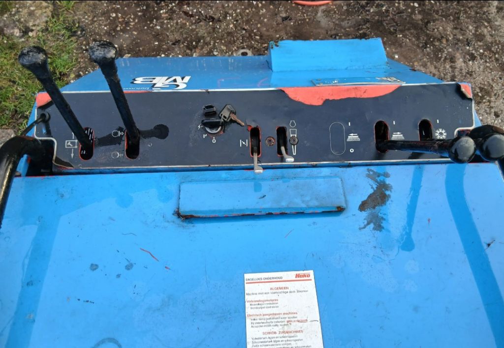 Gebruikte Hako-Hamster veegmachine. Ideaal voor het schoonmaken van grote oppervlakken. De machine is in gebruikte staat, maar functioneert nog goed. Perfect voor industriële toepassingen of grote magazijnen. Benzine