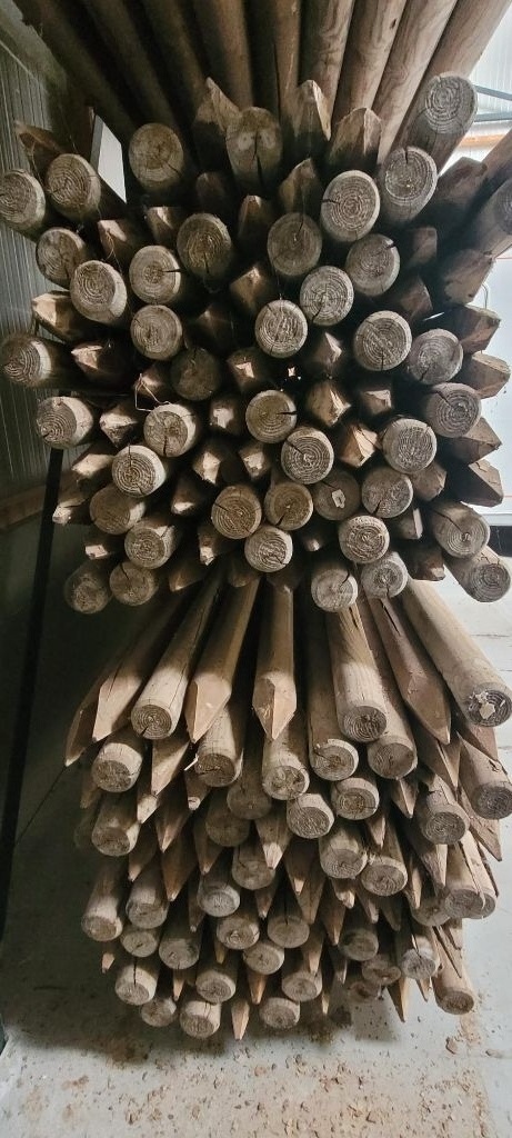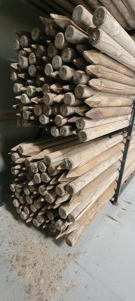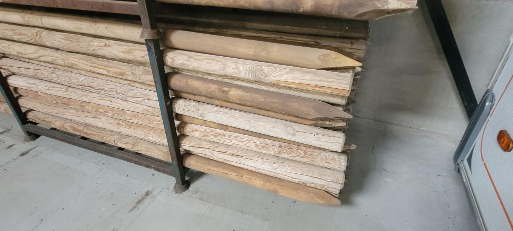 Partij palen van 350cm lang en 10 cm diameter. Jaar of 5 gebruikt maar ivm bedrijfsverplaatsing vroegtijdig gerooid. Liggen in stapelracks met 80 stuks. De stapelbokken zijn ook over te nemen. Totale partij rond de 700 palen.