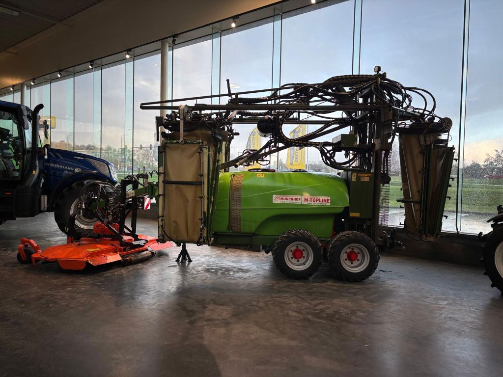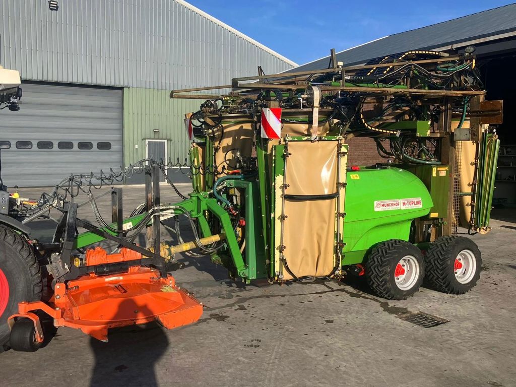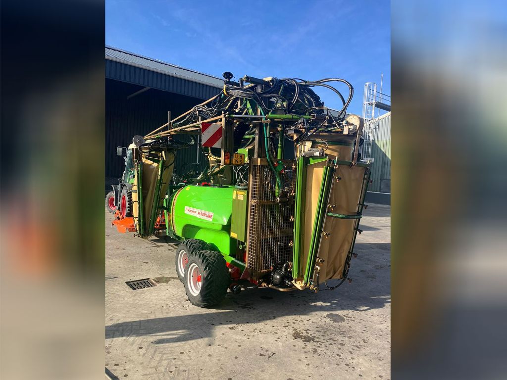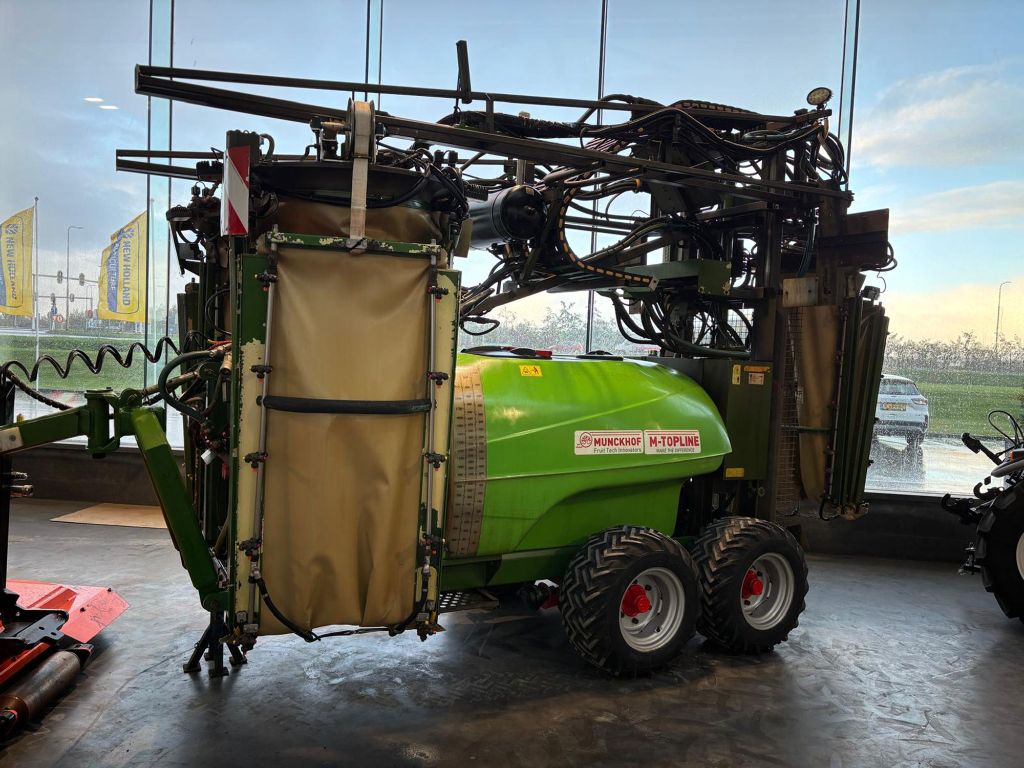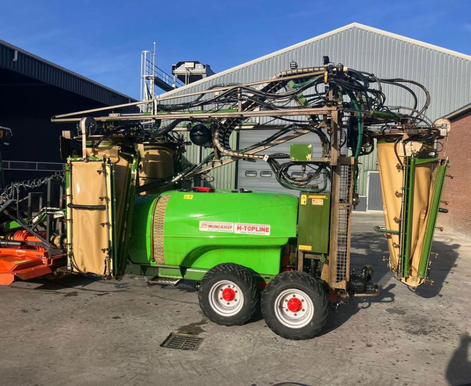 - Tank 2000 liter, 120 liter spoeltank, 15 liter handwastankje - Mechanisch roerwerk - Extra roerpomp - Pomp 4 cilinder, capaciteit 165 liter/minuut 40 bar - 3 luchtzakken met hydraulisch aangedreven ventilatoren - Ventilatoren afzonderlijk in- en uitschakelbaar - Rijbreedte hydraulisch verstelbaar van 3,0 tot 4,0 meter - Spuitbereik tot 4,0 meter boomhoogte - 12 elektrische kranen en elektrische drukregelaar - 6 elektr. hydraulische functies: mast omhoog + omlaag, opvouwen + afrollen luchtzakken, in- en uitklappen spuitbomen links en rechts, rijbreedte-verstelling links en rechts. Load Sensing. Bediening via het scherm van de trekker. - Tandemas met 4 banden TR06 31 x 15.50 – 15, spoorbreedte is handmatig verstelbaar, luchtgeremd - K80-K50 kogel trekhaak aan de spuit, spoorvolgend - 3 persfliters (1x 50 mesh en 2x 80 mesh) - VARIMAS (99% driftreductie) - Chem. Mixer + fustreiniger in vulzeef - Tankreiniger - Led-lampen aan luchtzakken (6x) - Extra werklampen bovenzijde - Vulleiding bovenop