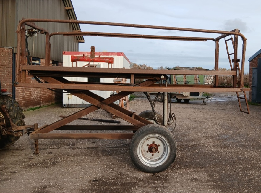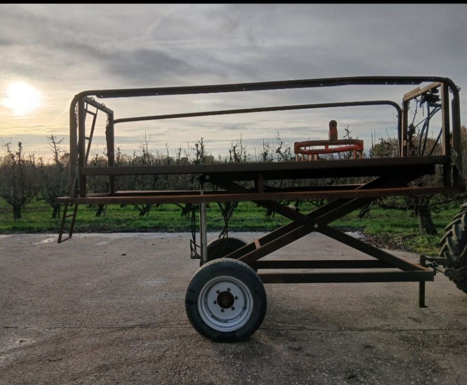 ***Te Koop**** MDE Snoeiplateau* getrokken uitvoering voor tractor* stevig chassis met 6 banden* schaarlift hydraulisch te bedienen* plateauhoogte tot 220cm hoog* plateau 80cm breed x 250cm lang* machine 100cm breed x 300cm lang* compacte ...
