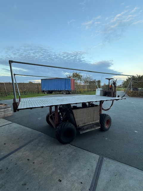 ***Te Koop**** MDE Snoeiplateau* getrokken uitvoering voor tractor* stevig chassis met 6 banden* schaarlift hydraulisch te bedienen* plateauhoogte tot 220cm hoog* plateau 80cm breed x 250cm lang* machine 100cm breed x 300cm lang* compacte ...