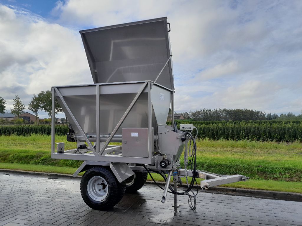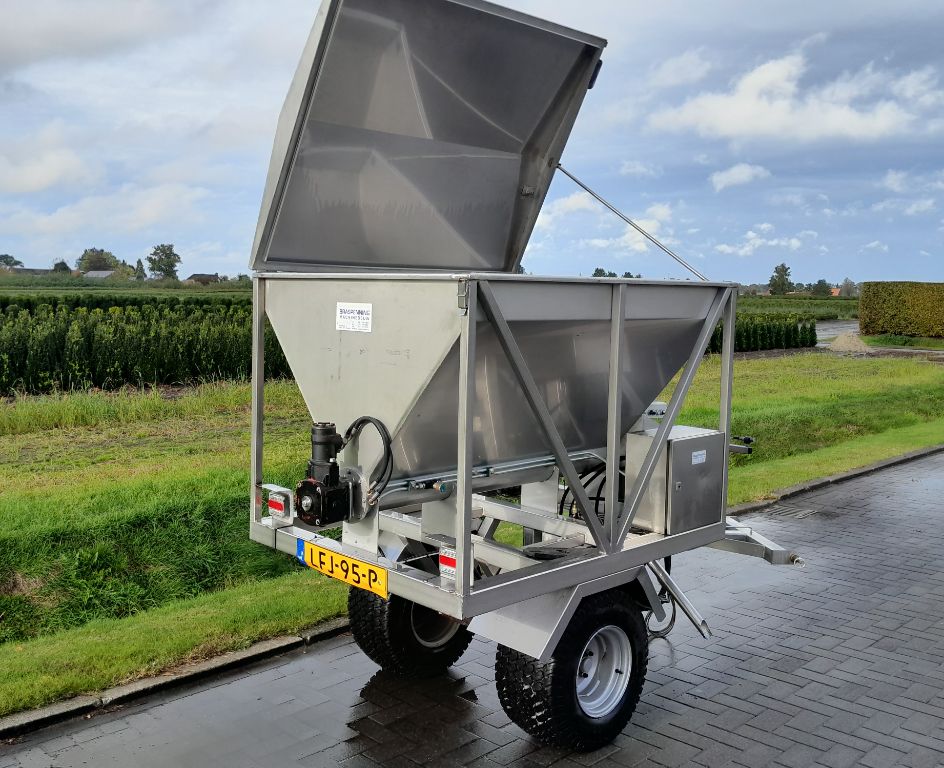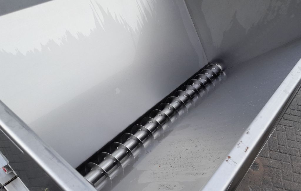 * vijzel voert geleidelijk meststoffen aan vanuit de voorraadbak in 2 verdeelbakken waarna er in de rij of per boom bemest kan worden