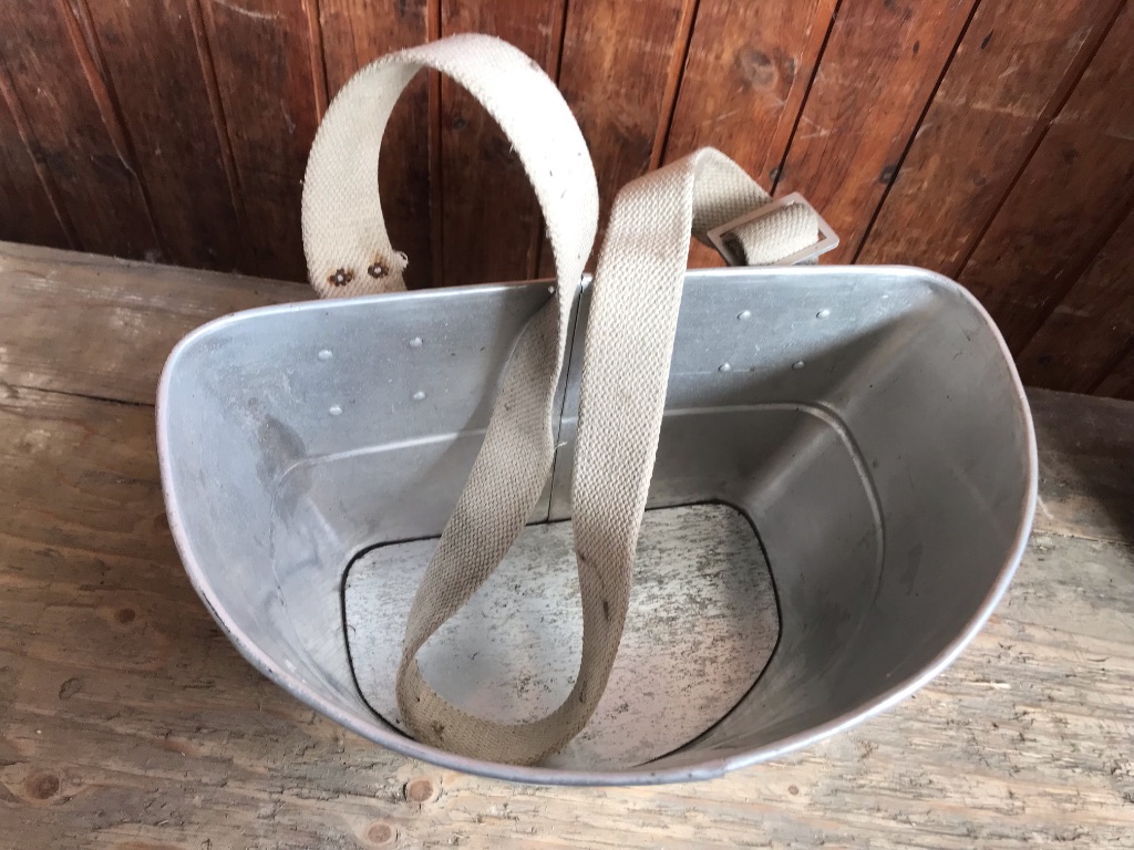 Aluminium Heijmul kersenplukkorf/plukemmer In zeer goede staat, met verstelbare draagriem.