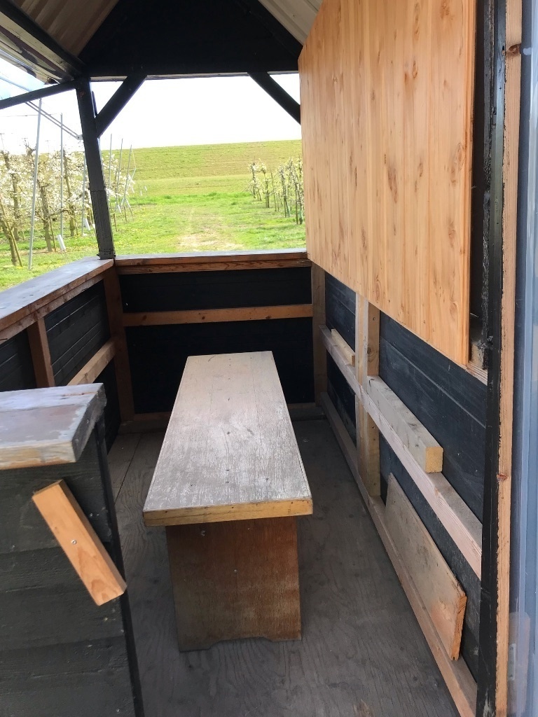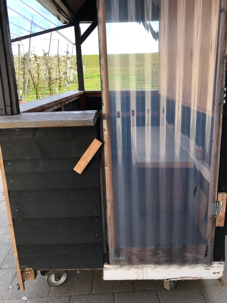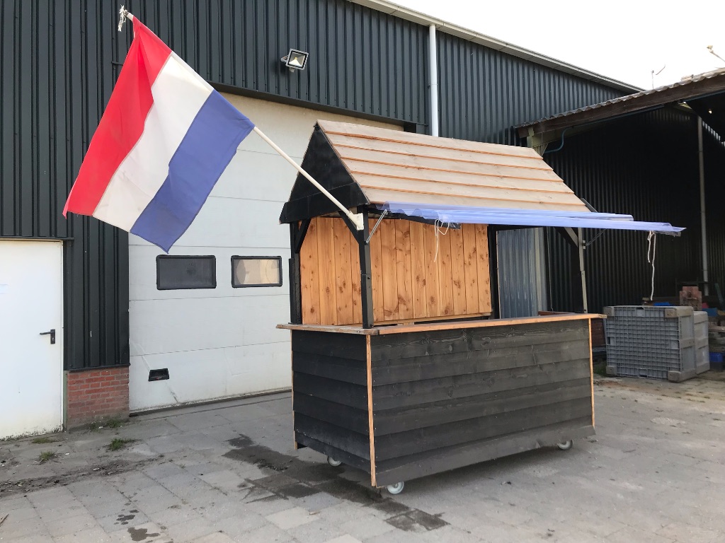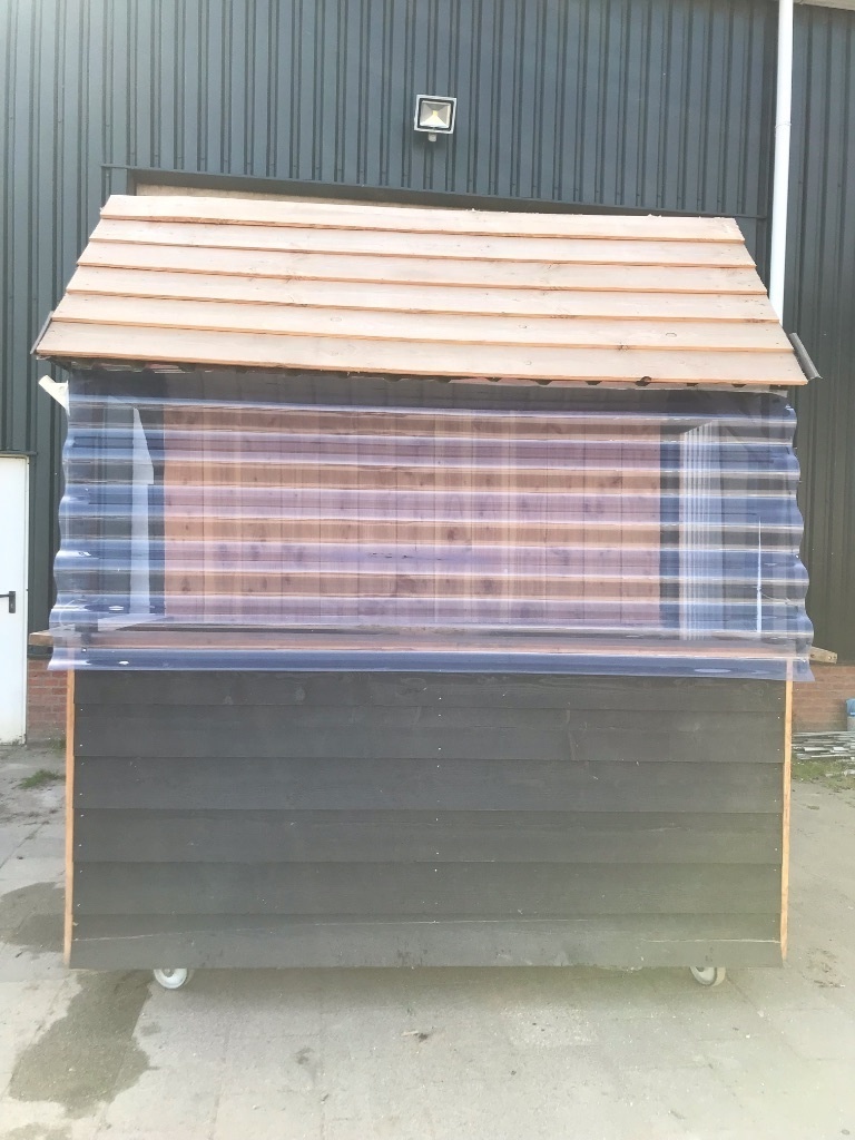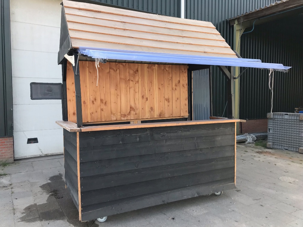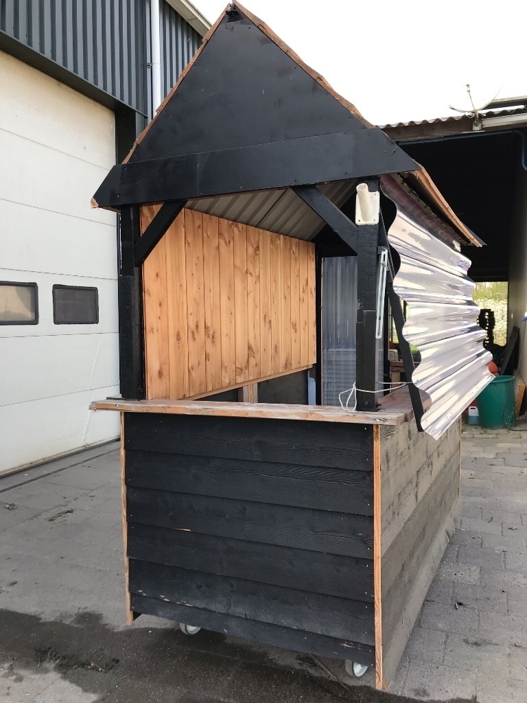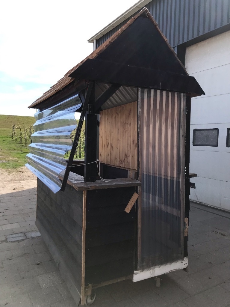 Verkoopstalletje, fruitkraam met luifel welke open en dicht gedaan kan worden.
