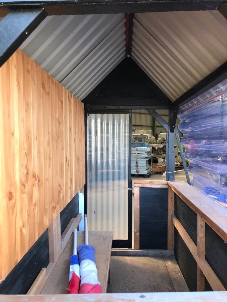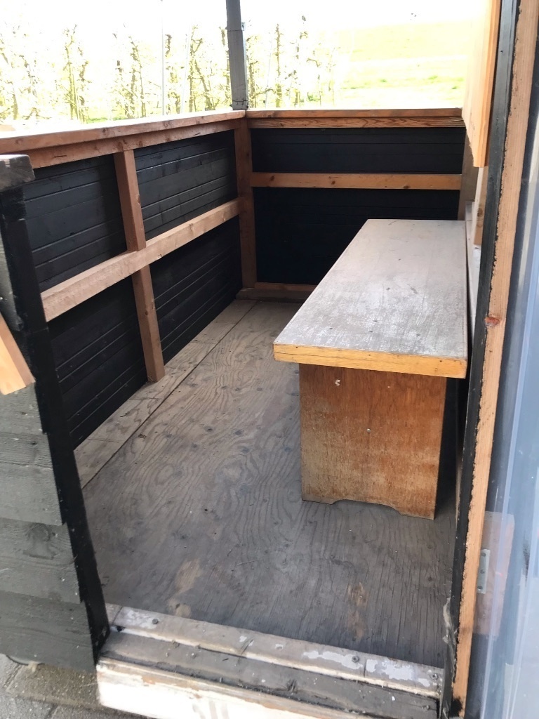 afmetingen: 2,7 meter breed, 1,58 doep incl luifel en 3 m hoog