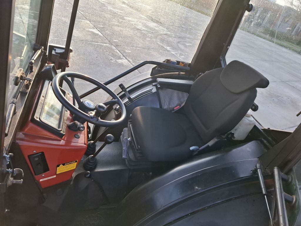 Vierwielaandrijving, cabine, banden voor 280/70R16, achter 380/70R283 dubbelwerkende ventielenPowershuttle met Hi-Lo versnellingsbak, hydraulische stabilisatie op de hef, een heflat is hydraulisch in hoogte te verstellen. Incl. ...