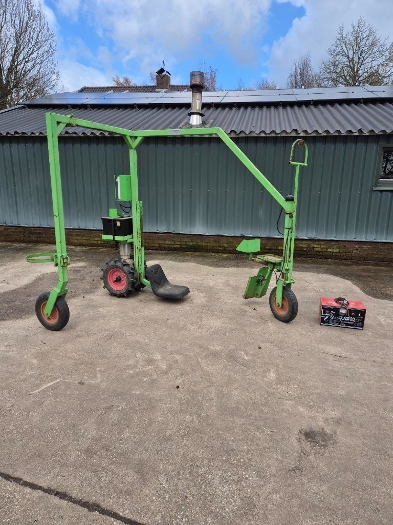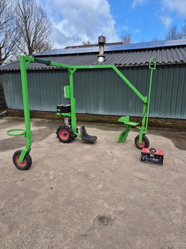 green assistant, electrisch aangedreven dmv accupakket, start/stop met voetbediening, traploos snelheid instellen 0 tot 9 mtr per minuut, sturen met de voeten, laag aan de grond werken zonder rugklachten, gebouwd door aldenzee deurne