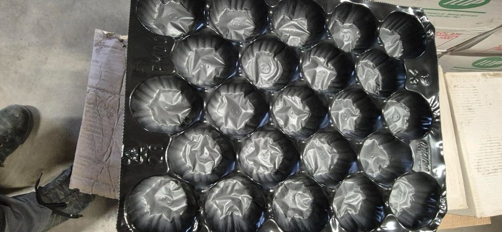 En bijna 1 pallet met pulppakbladen 60*40, 25 'gaten'.