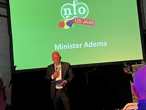 De volgende spreker, minister Adema van LNV, kreeg daarna de kans om dat recht te zetten. Hij noemde de fruitteelt van groot belang voor Nederland. Op de vraag of de politiek van plan is de fruitteelt een toekomst te geven, was zijn antwoord dat de bezorgdheid hem niet ontgaat, maar dat hij zich er graag voor inspant in de Tweede Kamer. Uit de zaal kwam een opmerking dat de politiek teveel bepaalt. Die vertelt nu ook al wanneer bepaalde gewassen geplant of gerooid moeten worden. Daarop reageerde Alkema dat de teler aan het stuur moet kunnen blijven draaien.